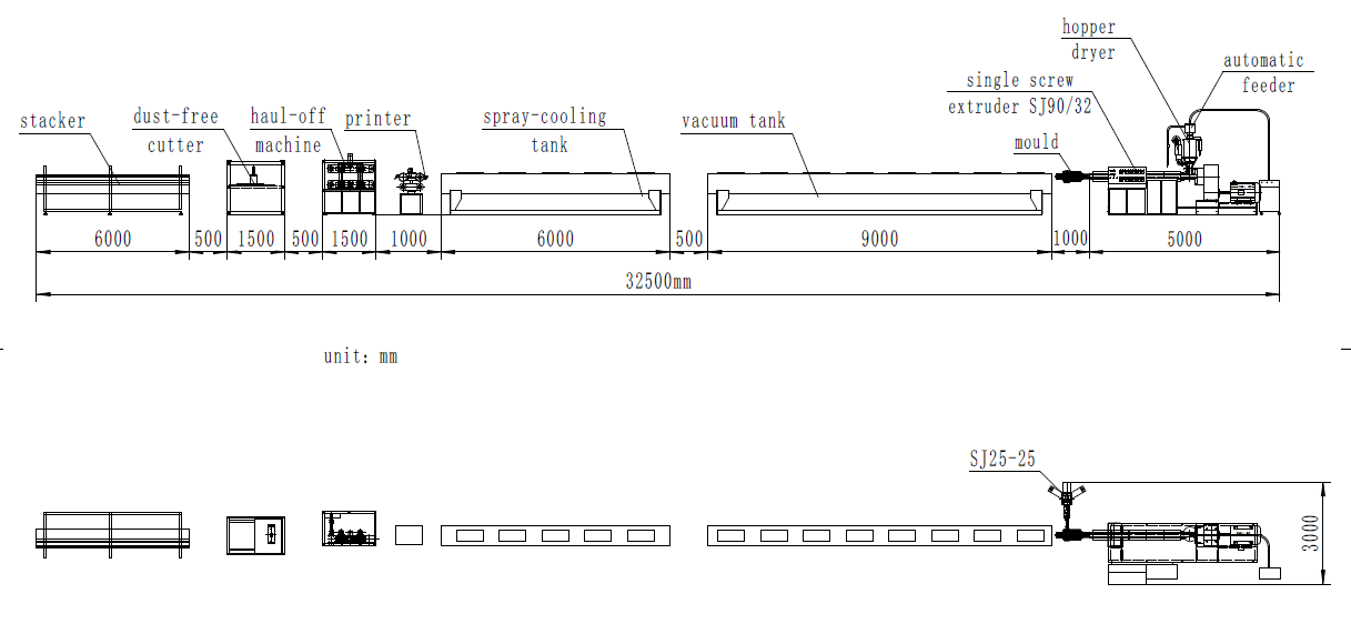 | 1 | أكسترودر (1) | SJ90/32 (75kw) | 1 |