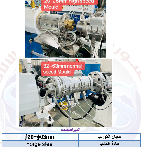 | 3 | قوالب | عالية السرعة: 20-25mm سرعة عادية: 32-40-50-63mm