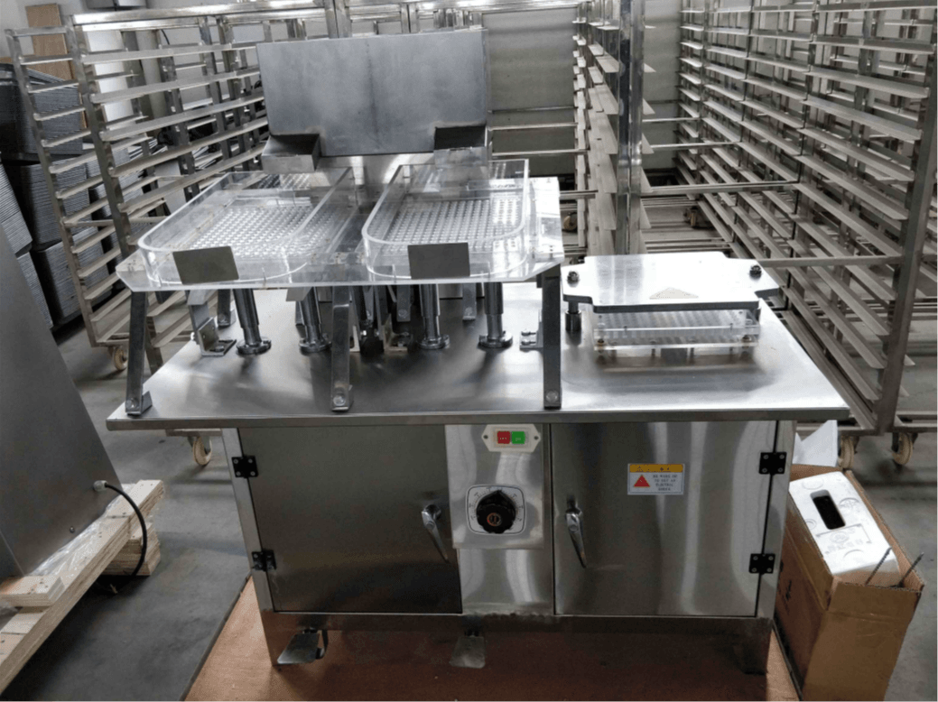 الجزء الرئيسي، والقادوس، ولوح الطاولة مصنوعون من الفولاذ غير القابل للصدأ ومتوافقون مع معايير GMP.